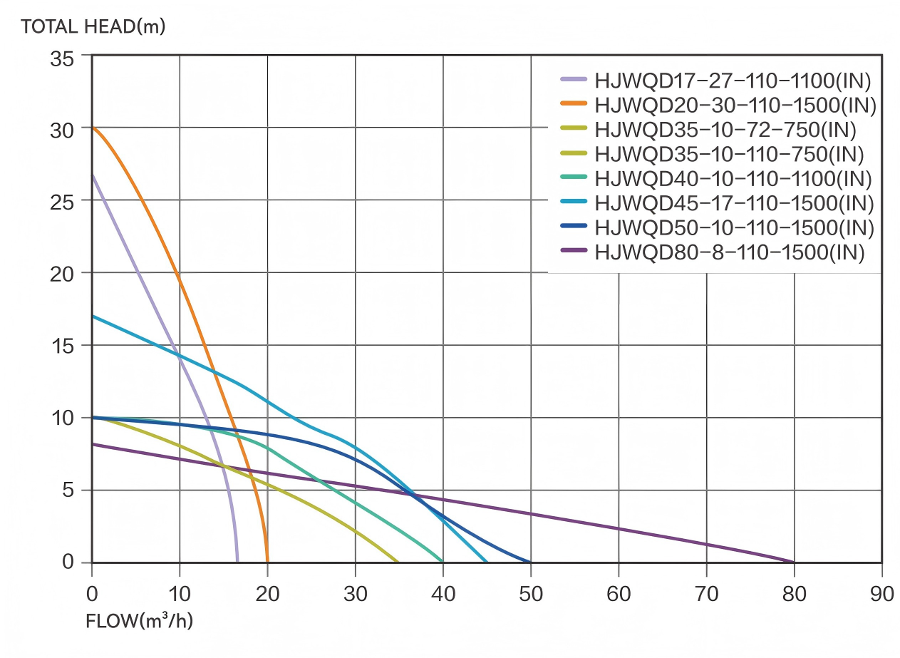 HJWQD80-8-110-1500 | 110V | 110V-150V | 1500W | 80m³/h | 8m | 4" | 5m | <220V | <205V |